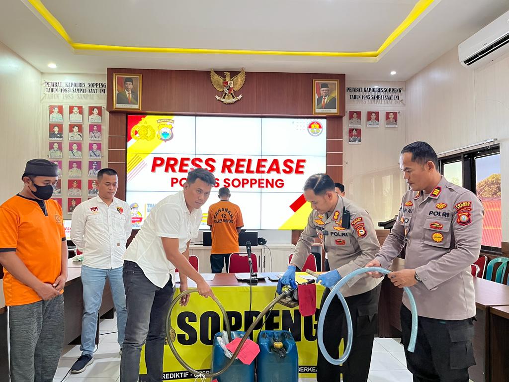 Sementara untuk Kasus Penyalahgunaan BBM Subsidi, Sat Reskrim Polres Soppeng membekuk 3 Pelaku yaitu masing – masing Lel WH yang merupakan pelaku utama pembeli dan pengangkut BBM dijalan Poros Desa Pising Kecamatan Donri – Donri serta Lel. SM dan seorang wanita berinisial R yang merupakan petugas SPBU Made Ali Kemakmuran Kelurahan Lalabata Rilau Kecamatan Lalabata pada 16 September lalu.